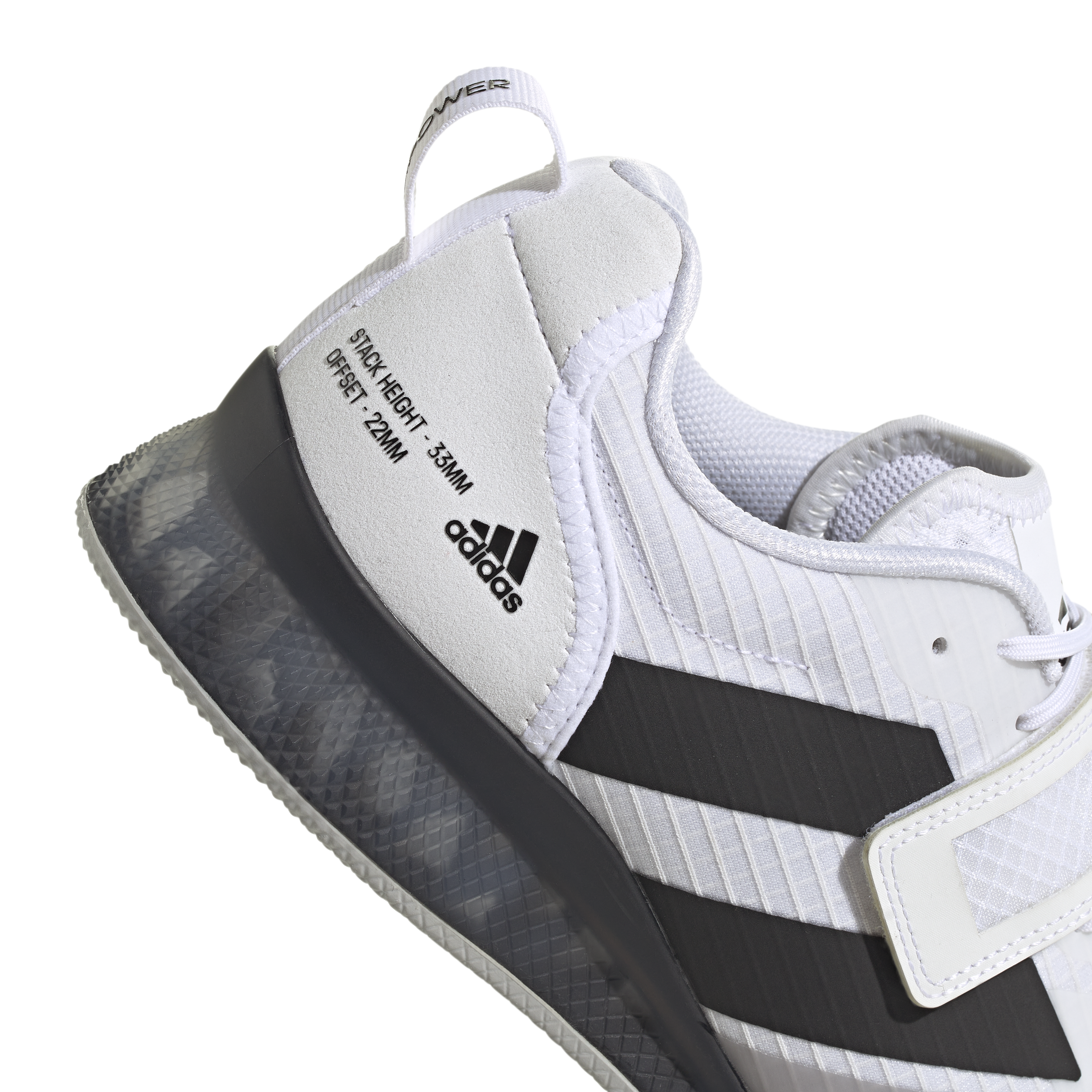 Adidas Adipower tõstejalatsid tagavad stabiilsuse ka kõige raskemate koormate all tänu tõstetud kannale ja suure tihedusega vahetallale. Vastupidavast materjalist pealis, mis on varustatud paeltest ja takjakinnitusega kombinatsiooniga, hoiab jalad kindlalt paigal. Kummist välistald on spetsiaalselt loodud tagama kindlat jalgealust põrandal.