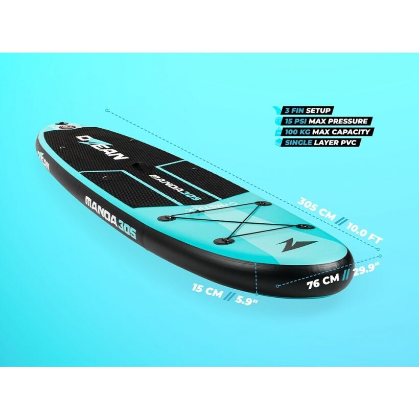 Ozean Manda 305 on algajasõbralik, keskmise suurusega SUP-laud, mis pakub sujuvat SUP-kogemust. Pakett sisaldab kõike, mida vajate alustamiseks.