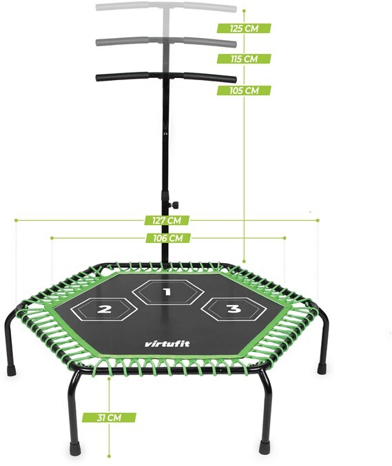 VirtuFit Fitness Trampoliin PRO reguleeritava käepidemega (127 cm) – must