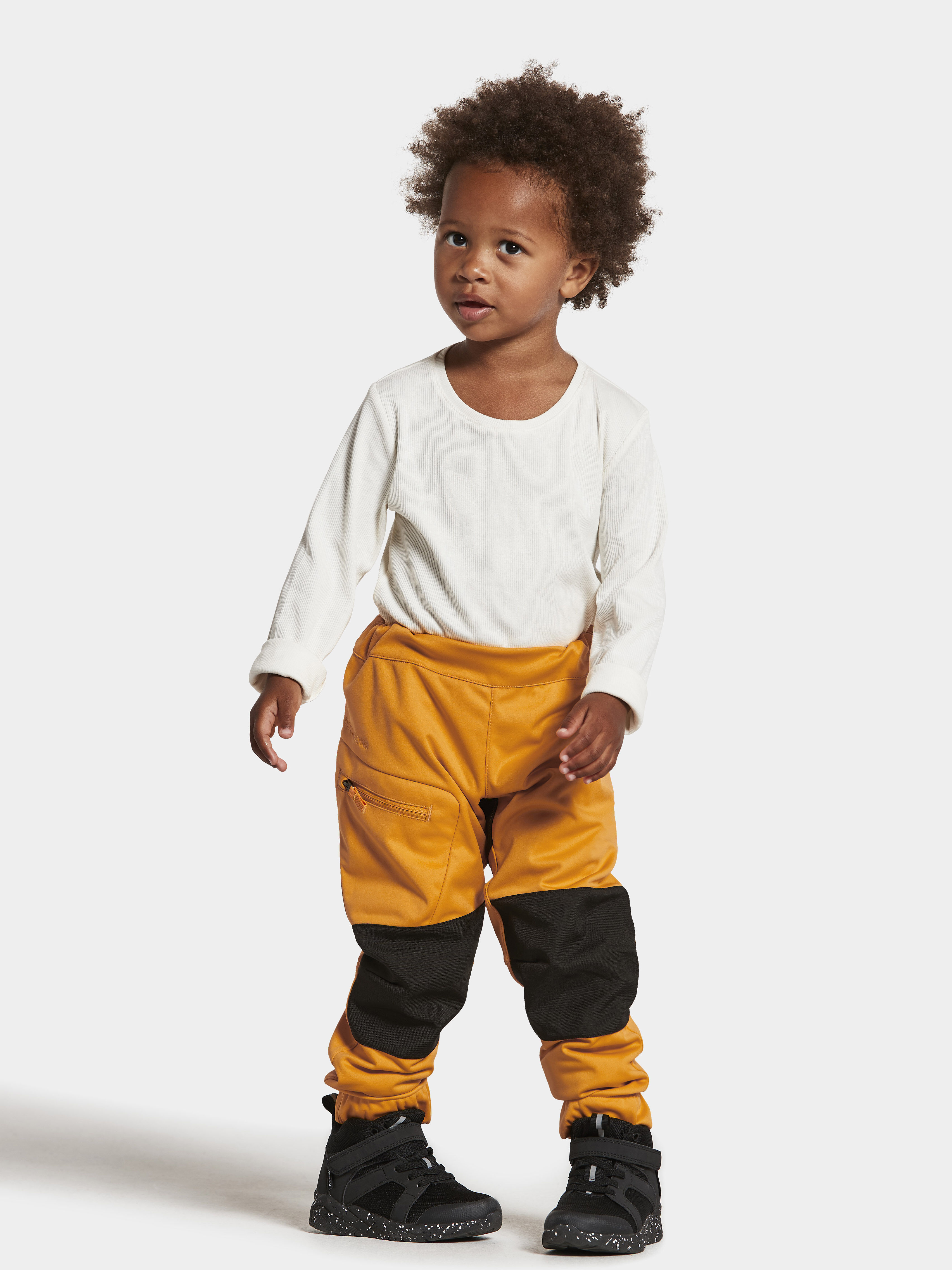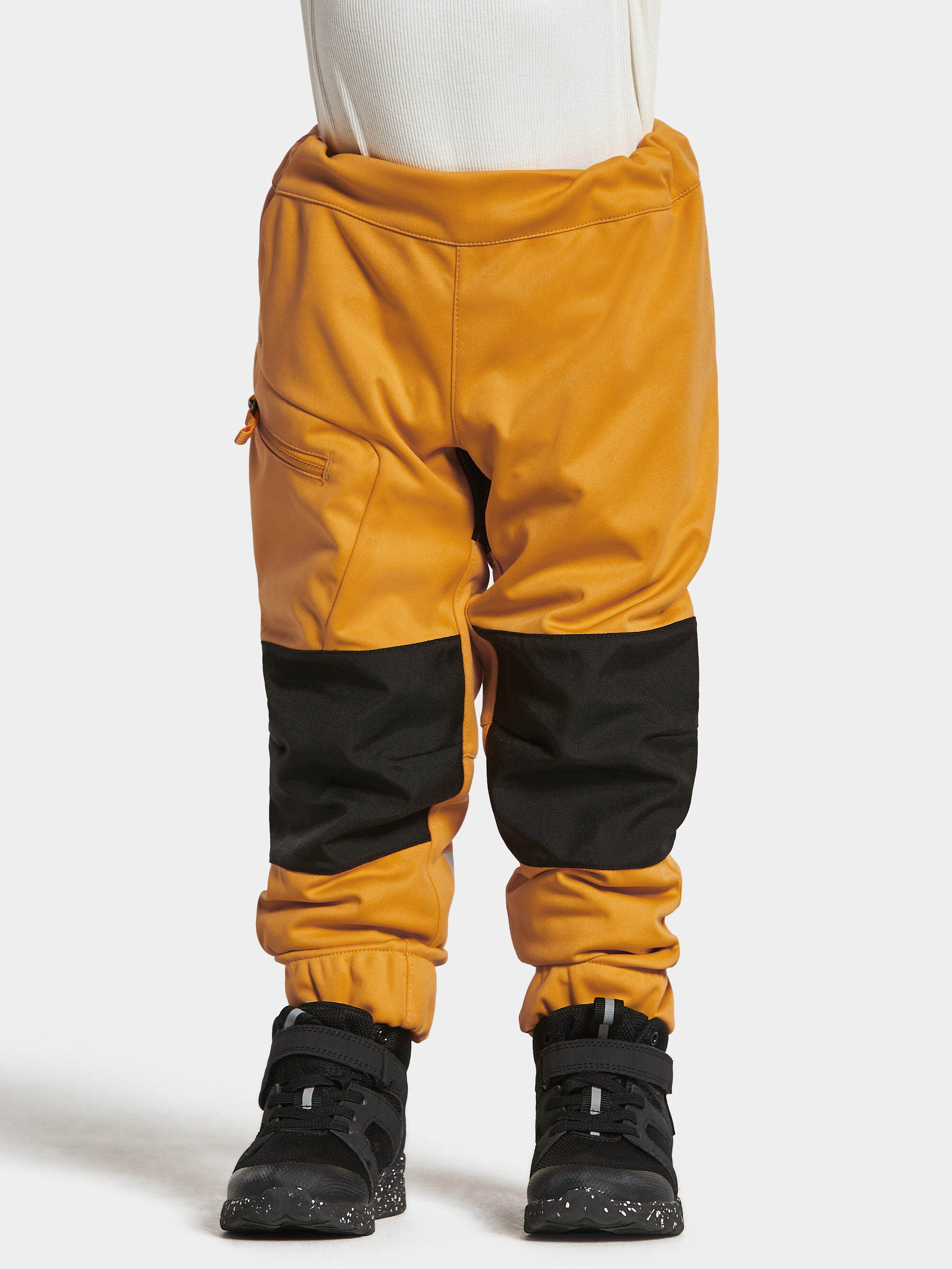 Didriksons Lövet dressipüksid on mugavad. Tuulekindel ja vetthülgav softshellmaterjal võimaldab mugavat liikumisvabadust. Põlvedel ja istmikuosal on Cordura® tugevus, mis muudab treeningpüksid eriti vastupidavaks. Elastne vööosa on neil reguleeritav ja parema reie peal asub tõmblukuga tasku, et saaks koduvõtmeid või muud olulise turvaliselt hoiustada. Sääreavad on elastsed ja hoiavad pahkluude ligi, et külmapoiss sisse ei pääseks ja loomulikult on ühele säärele lisatud suur helkurlogo, et pimedal ajal oleks laps turvaliselt nähtav!