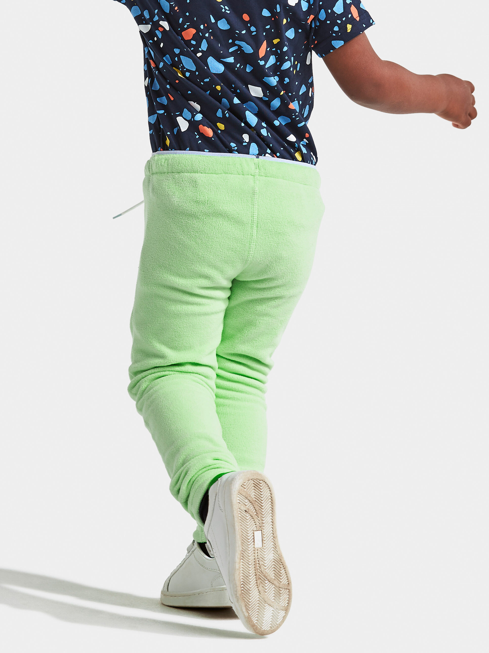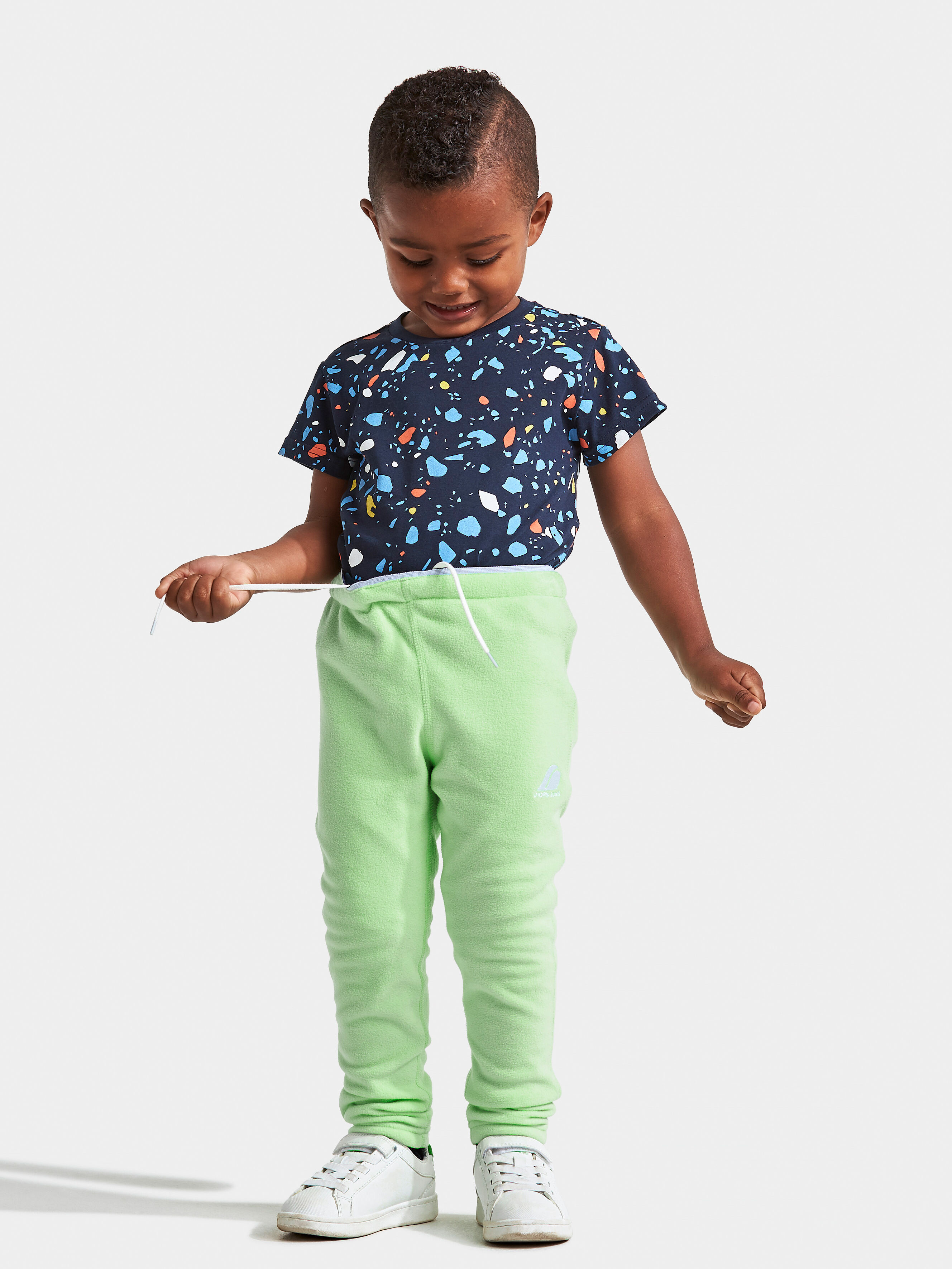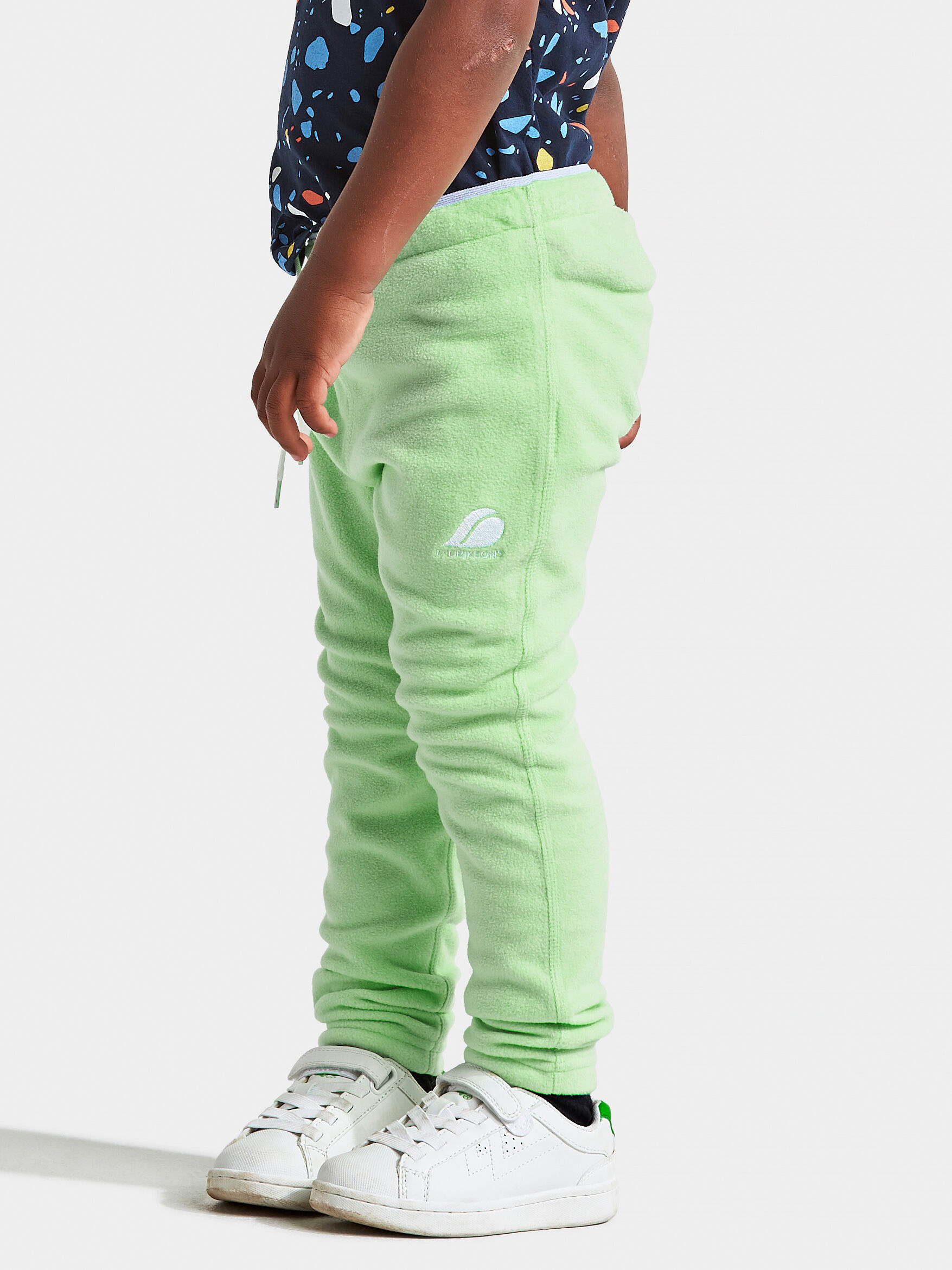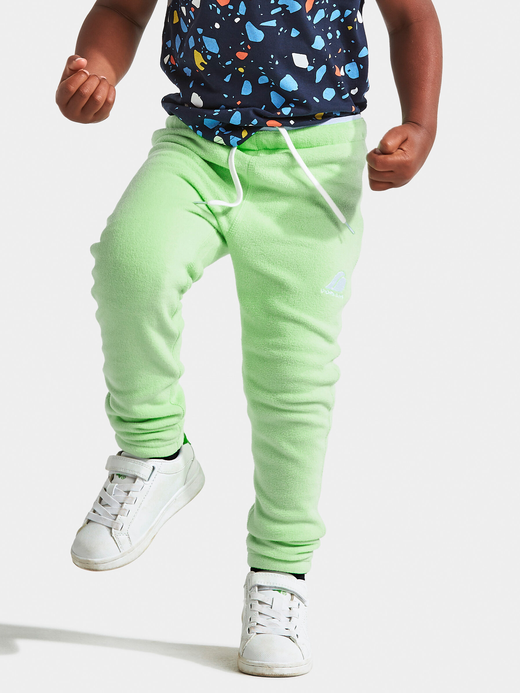 Didriksons Monte Kid’s Pants 9 - pehmed ja elastsest mikrofliisist soojad püksid, mis sobivad hästi aktiivseks õues mängimiseks ja kihiliseks riietuseks jahedamal ajal. Sirge lõige ja reguleeritav elastne vöö tagavad mugava istuvuse ning 4-way stretch koos flatlock-õmblustega võimaldab vabalt liikuda ilma hõõrumiseta.