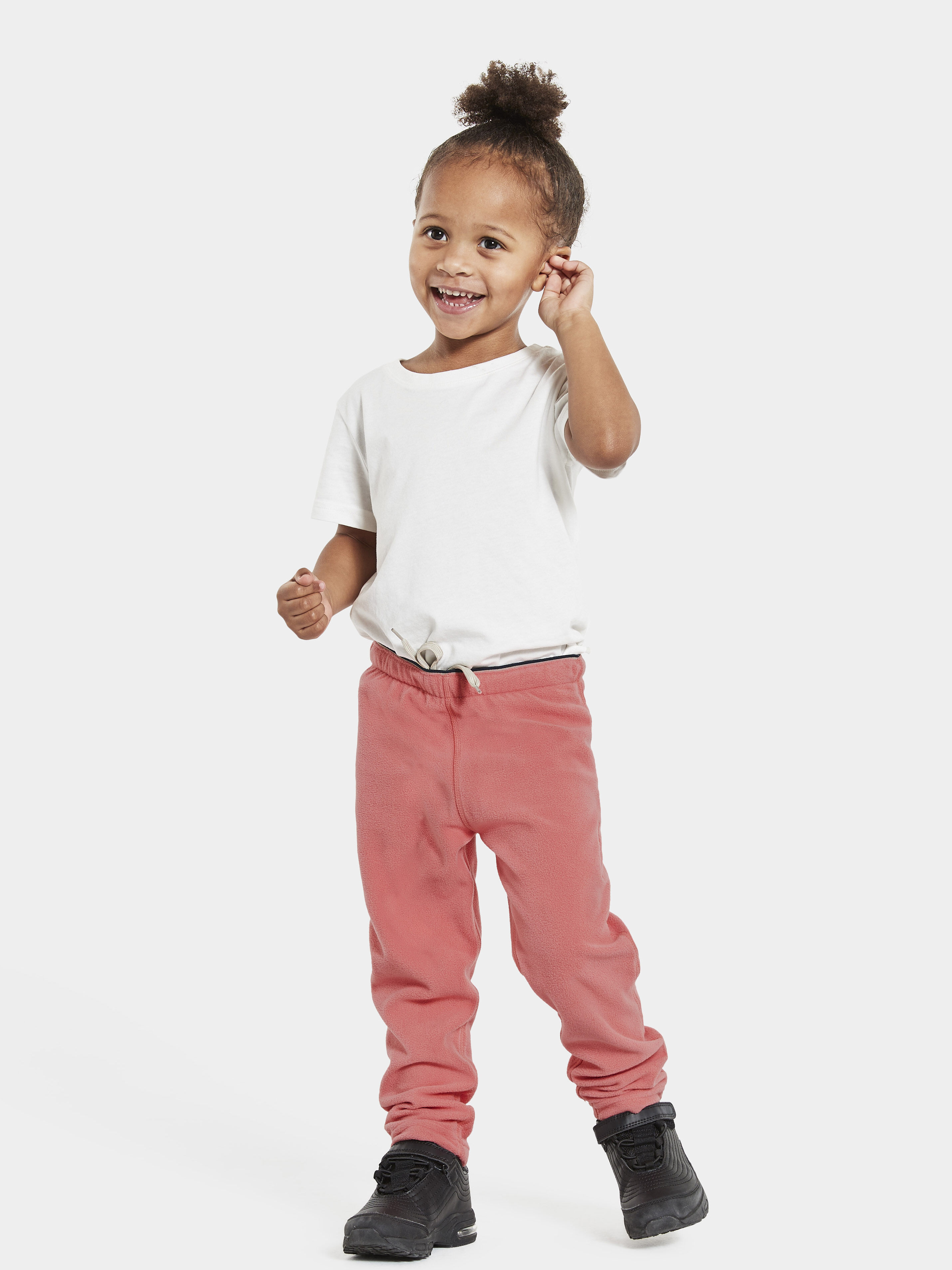 Didriksons Monte Kid’s Pants 9 - pehmed ja elastsest mikrofliisist soojad püksid, mis sobivad hästi aktiivseks õues mängimiseks ja kihiliseks riietuseks jahedamal ajal. Sirge lõige ja reguleeritav elastne vöö tagavad mugava istuvuse ning 4-way stretch koos flatlock-õmblustega võimaldab vabalt liikuda ilma hõõrumiseta.