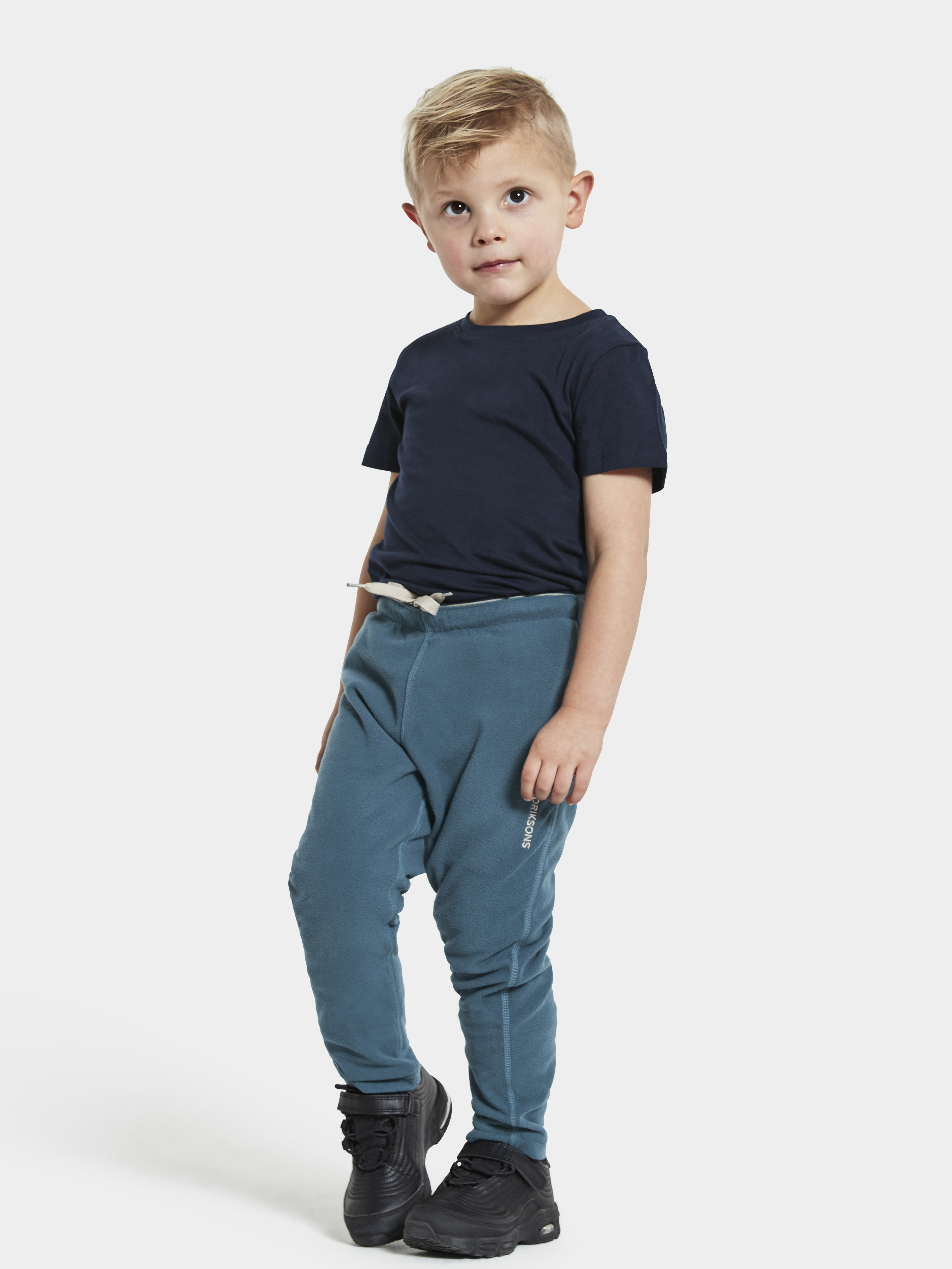 Didriksons Monte Kid’s Pants 9 - pehmed ja elastsest mikrofliisist soojad püksid, mis sobivad hästi aktiivseks õues mängimiseks ja kihiliseks riietuseks jahedamal ajal. Sirge lõige ja reguleeritav elastne vöö tagavad mugava istuvuse ning 4-way stretch koos flatlock-õmblustega võimaldab vabalt liikuda ilma hõõrumiseta.