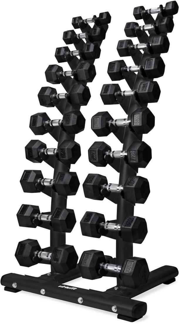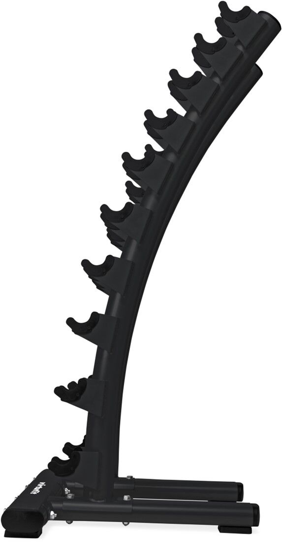 VirtuFit Standing Deluxe hantliraam on kauni disainiga riiul, mis mahutab 20 hantlit või 10 komplekti kange. See riiul mitte ainult ei võimalda teil hantleid hõlpsalt hoiustada, vaid lisab teie jõusaalile ka stiilse ilme. See riiul aitab hoida teie ruumi korras, puhtana ja turvaliselt. Kummeeritud viimistlusega hantliraam ei kahjusta teie hantleid. VirtuFit Standing Deluxe hantliraam mahutab 20 hantlit või 10 komplekti kange ja selle mõõtmed on 84 x 61 x 131 cm (P x L x K).Ainulaadne kumer disain võimaldab hantleid korralikult hoiustada. Tugev teraskonstruktsioon võimaldab hantlihoidjal hoida kuni 300 kg, mis on piisav kõigi teie hantlite hoiustamiseks! Suur 26 kg kaal muudab hantlihoidja tugevaks ja stabiilseks, mistõttu sobib see ka professionaalseks kasutamiseks. Libisemisvastased kummist jalad tagavad, et hoidik ei liigu ja püsib kindlalt paigal, mis kaitseb ka põrandat.
