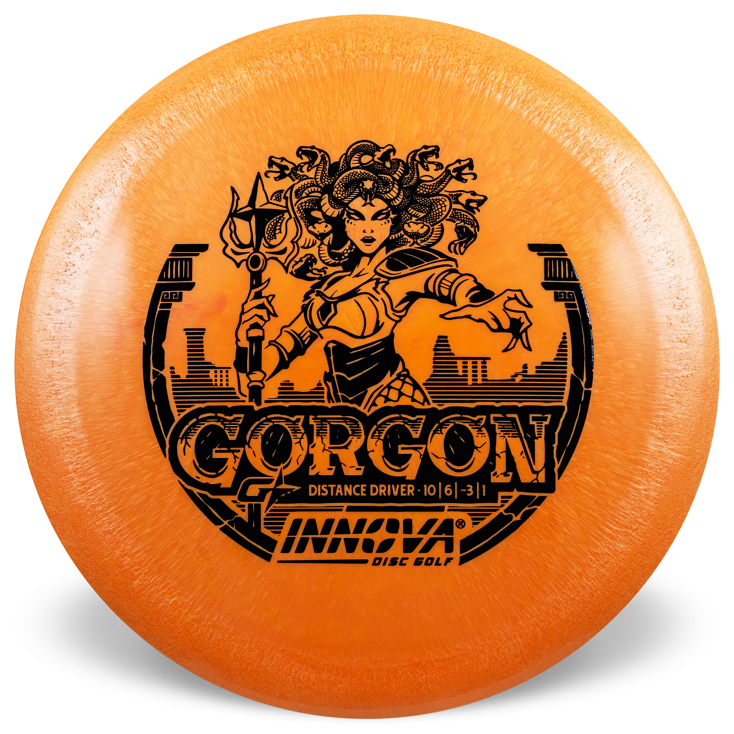 Tutvustame uhkusega Innova uut discgolfiketast - Gorgon! See ketas on loodud vastama nii algajate kui ka edasijõudnud mängijate vajadustele, pakkudes suurepärast kontrolli ja kaugust igal viskel. Gorgon on disainitud kiireks ja stabiilseks kettaks, pakkudes pikka ja sirget lendu väikese hajumisega. Tänu oma mitmekülgsetele omadustele on Gorgon suurepärane valik nii algajatele, kes vajavad stabiilset ja hõlpsasti kontrollitavat ketast, kui ka kogenud mängijatele, kes otsivad usaldusväärset ja täpset viskerelva. Kokkuvõttes on Innova Gorgon discgolfiketas usaldusväärne ja tõhus tööriist, mis täiendab iga mängija kotti. Avasta oma potentsiaal ja vii oma mäng uuele tasemele Innovaga!