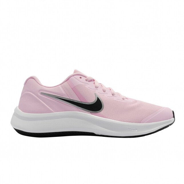 Lihtsa tegumoega, klassikaliselt tekstiilist pealispinnaga Nike Runner jalatsid lastele on suurepärased aktiivsemateks tegevusteks – sobilikud ka õues hullamiseks, mängimiseks. Pealispinda kaunistavad lisaks sünteetilisest materjalist detailid. Väliskülge dekoreerib silmapaistev Nike logo, tõmbekeelel samuti vihje brändile. Paeliskinnis võimaldab imelihtsasti reguleerida jalatsi pingutust. Tugevdatud ninaosa kaitseb lapse jalga. Kõrgem kannaosa pakub pehmet polsterdust. Sisemus jalal mugavast ning hästi hingavast tekstiilist, sisetald astudes mugav. Välistalda iseloomustab kummisus, mis ei luba lapsel libastuda.