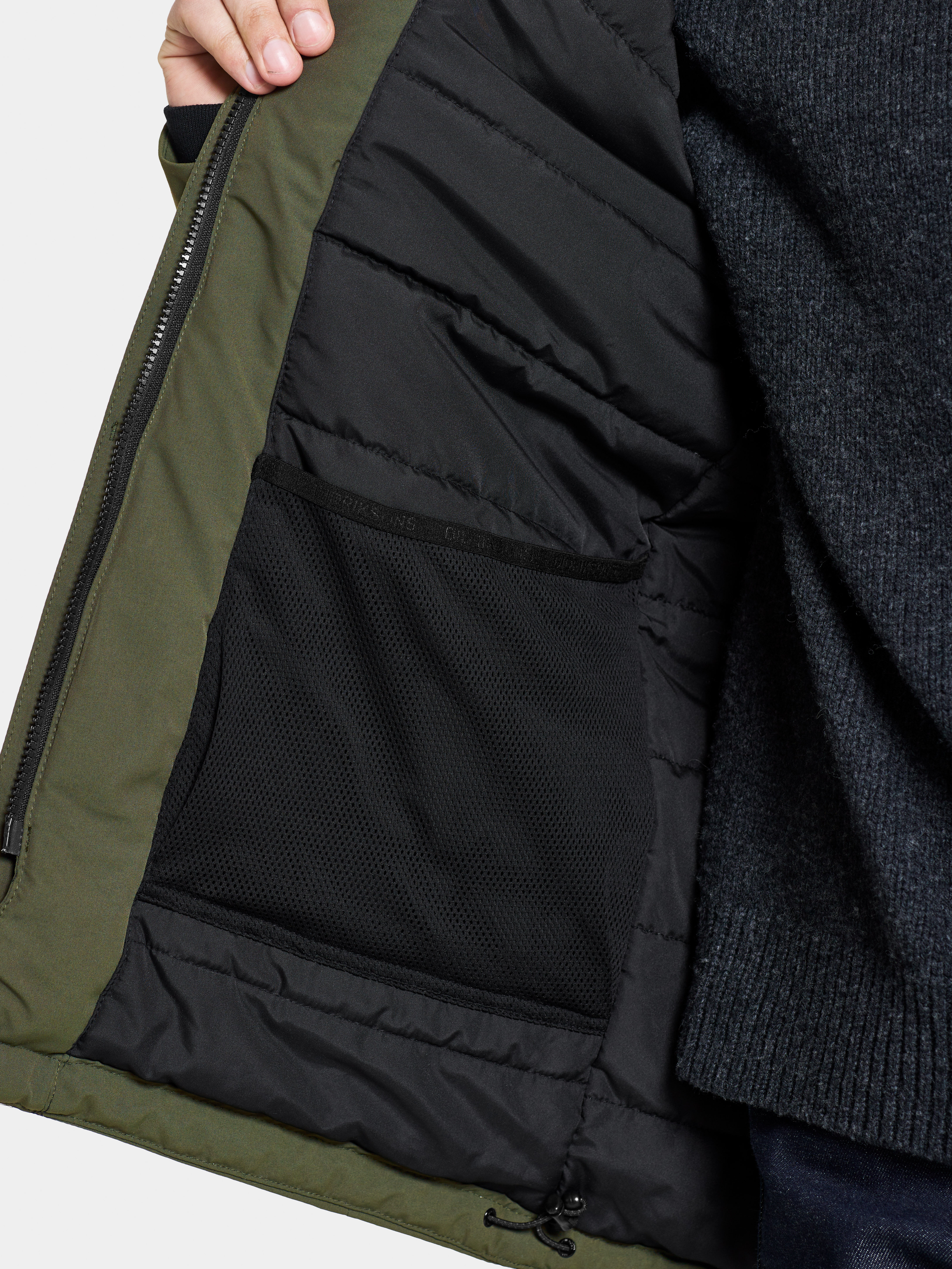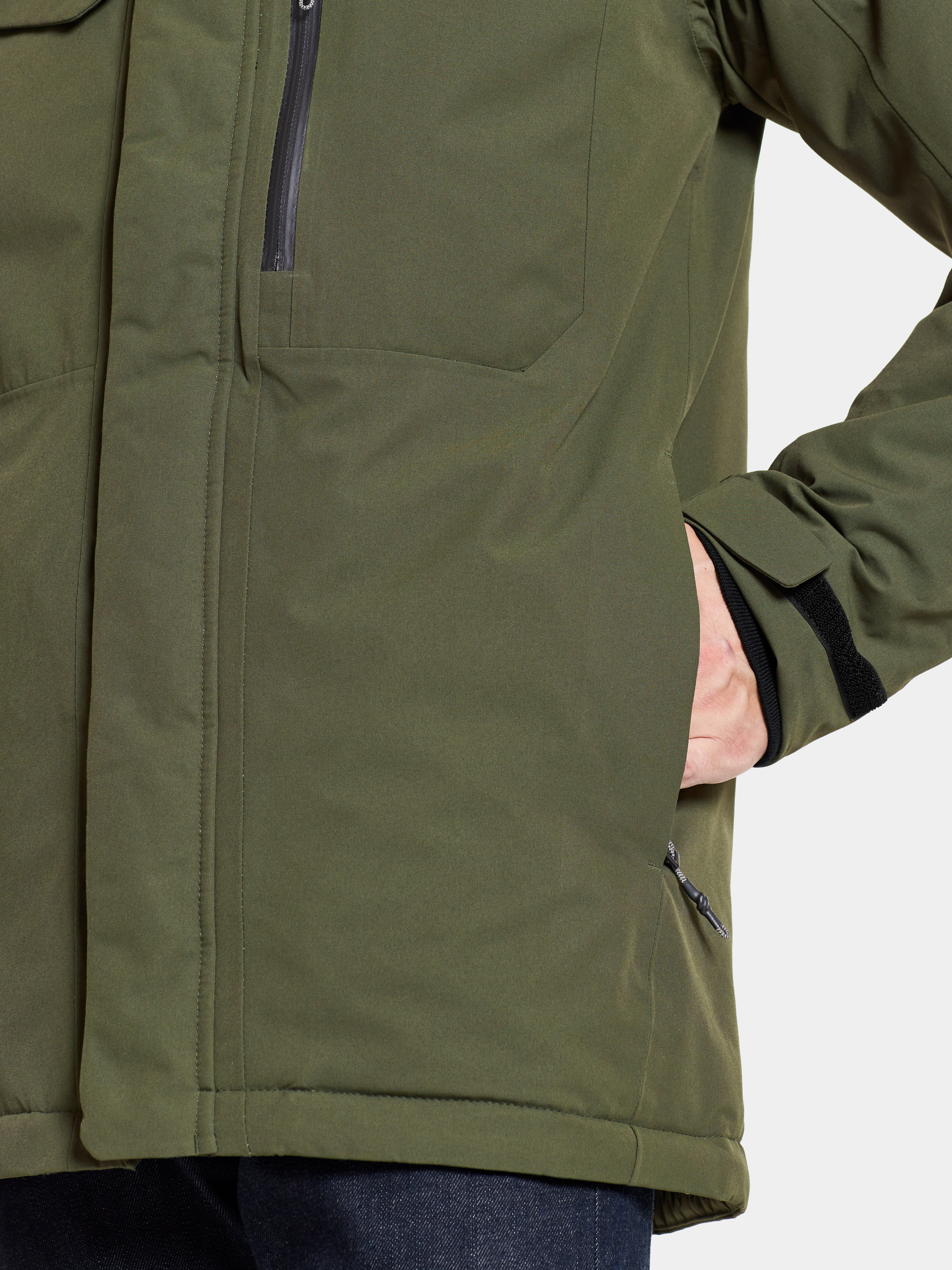 Jope on kerge, polsterdatud ja eemaldatava kapuutsiga. Kokku kuus taskut, rinnataskus on veekindel tõmblukk. Vooder on värvitud Solution Dye värvimistehnikaga, mis säästab kuni 80% vett võrreldes tavapäraselt värvitud polüester/polüamiidkangaga.
