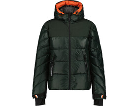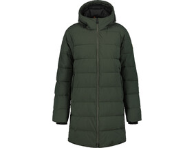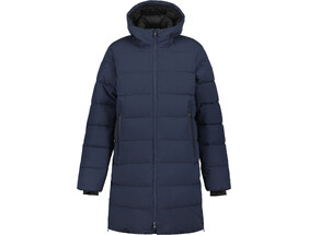 Pealismaterjal on vett- ja tuulthülgav. Teibitud lukkudega avanevad nii hõlmad kui ka külje- ja rinnatasku ning elastsed kandid ääristavad nii varrukaid kui ka alumist serva. Fikseeritud kapuuts. Sisemust vooderdab polüamiidkangas. Põuetasku. Modelli pikkus on 193 cm ja kannab suurust 52. Pikkus turjast alumise servani on 70 cm. Materjal: pealispind, vooder polüamiid 100%, soojustus polüester 100%.