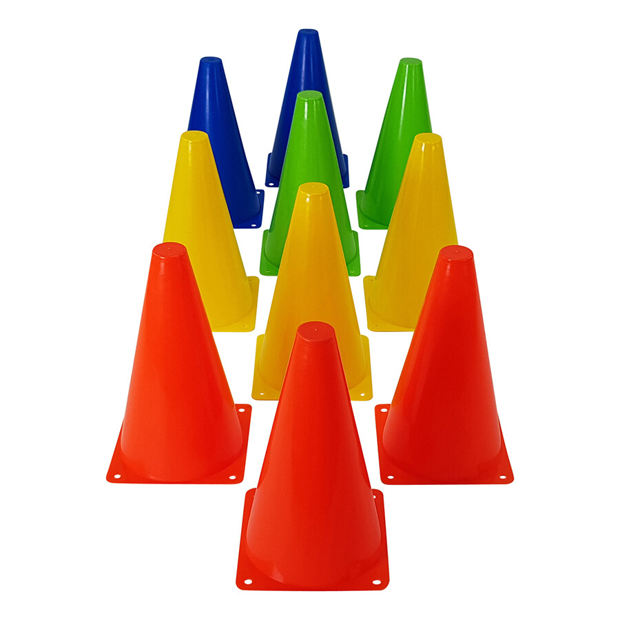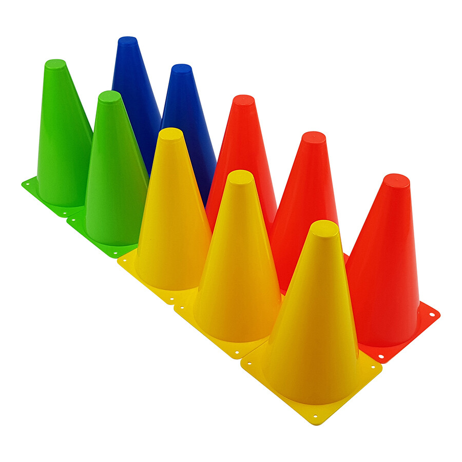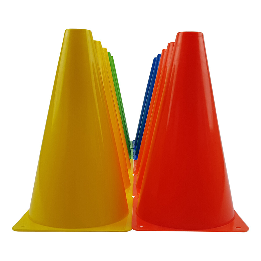 Would you like to put marks on a field or course yourself? That can be done easily using these football cones. It’s a handy tool for a football training, hockey training or the annual sports day at school. The Tunturi football cone set consists of 10 cones in 4 different colors. They are lightweight, easily fit into each other and have a height of 23 cm. Thus it is easy to gather and tidy them neatly. Would you like to bring the football cone set with you? If so, then the mesh bag comes in handy.