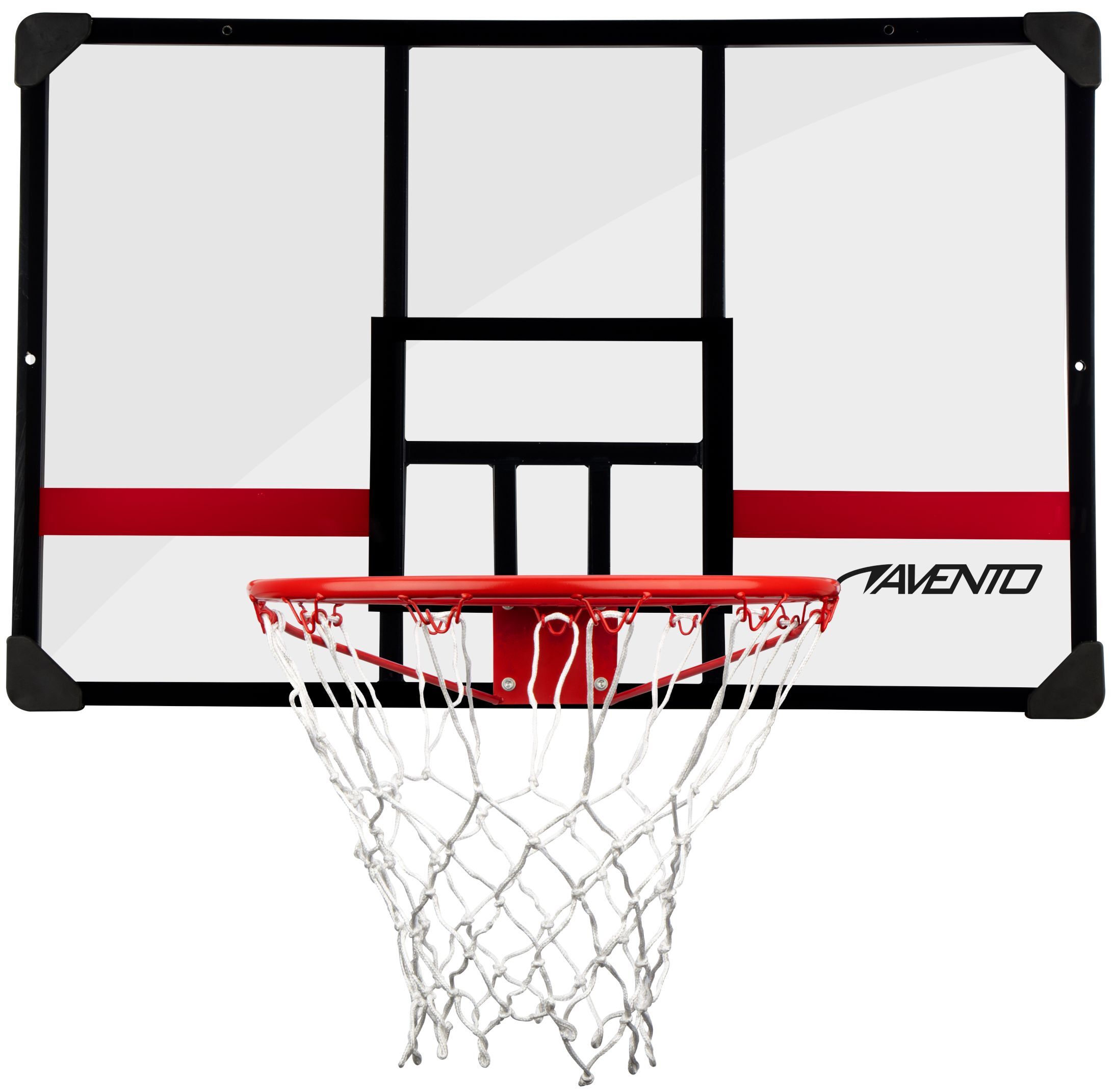 Avento korvpalli tagalaud, mis on valmistatud läbipaistvast polükarbonaadist, mõõdud 112X72X3 cm, komplektis: tagalaud, rõngas 45 cm ning ilmastikukindel korvivõrk.
