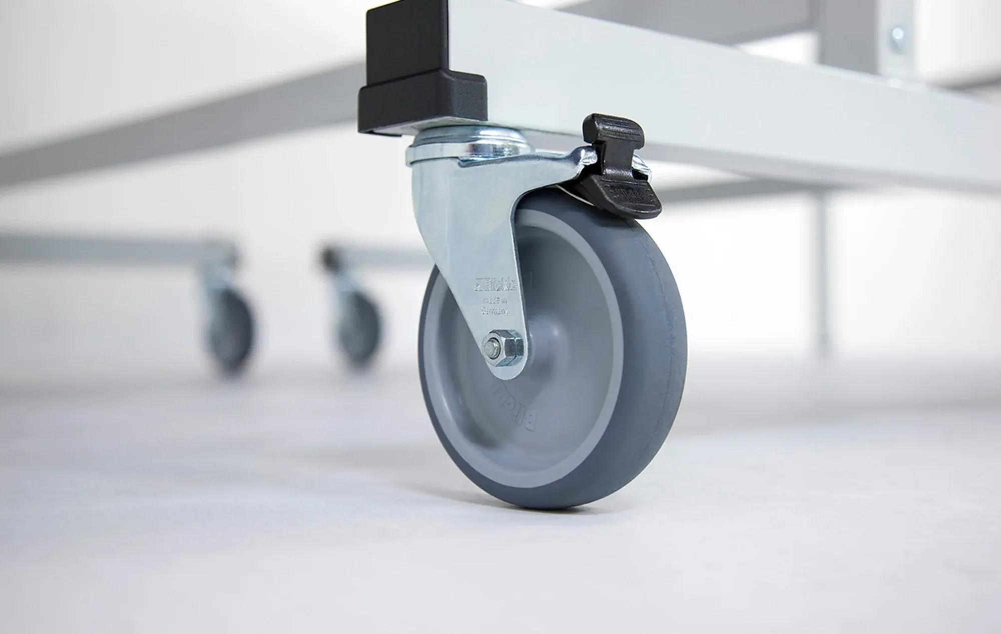 Rattad: 4 pöörlevat ratast (Ø 100 mm) kummist kattega, 2 lukustatavad