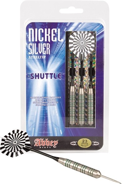 Niklist noolemängu nooled, alumiiniumist vars, terasest ots, 23 grammi, sobivad kasutamiseks tavalistel noolemängu laudadel. Pakendis kolm noolt.