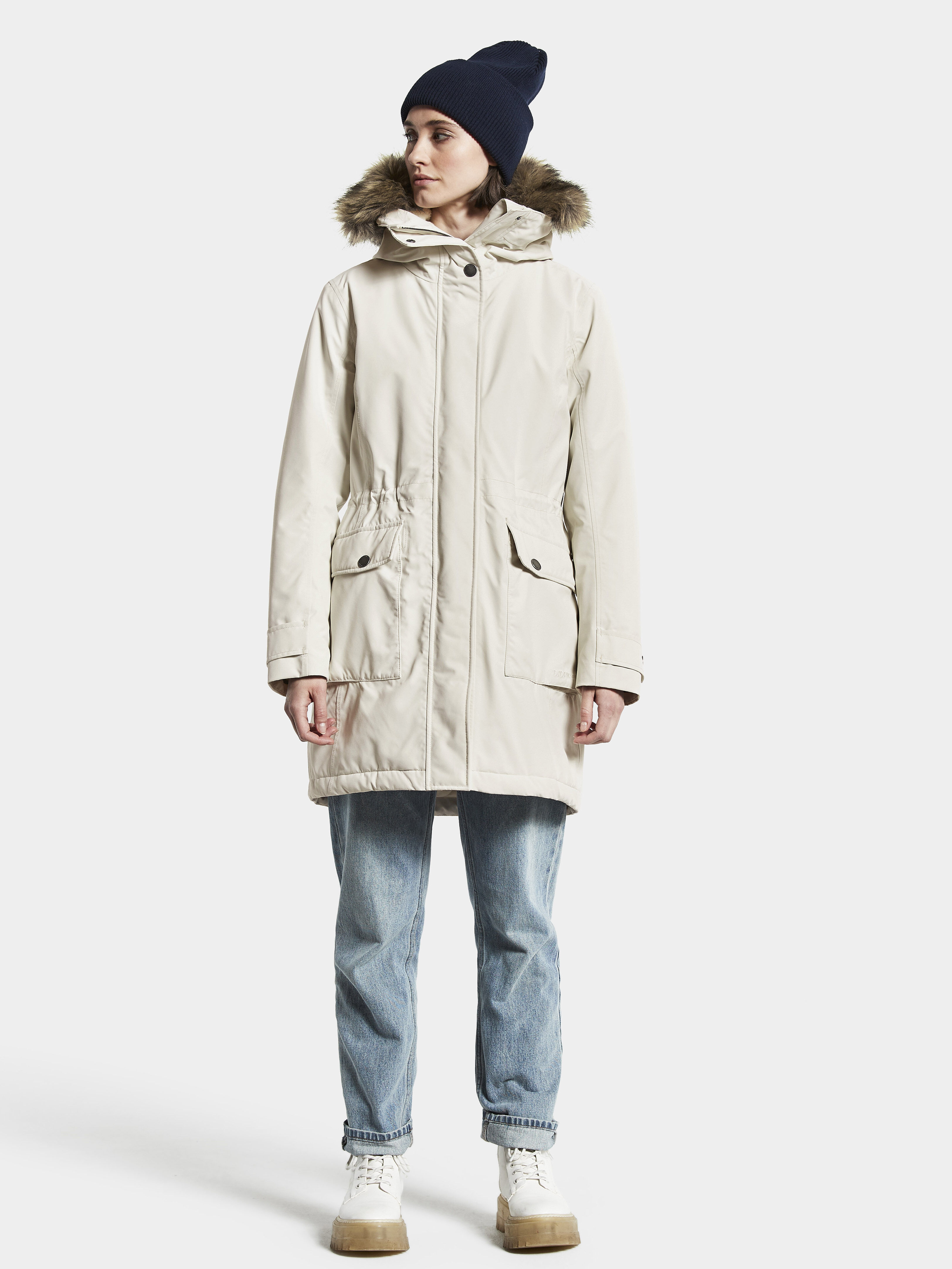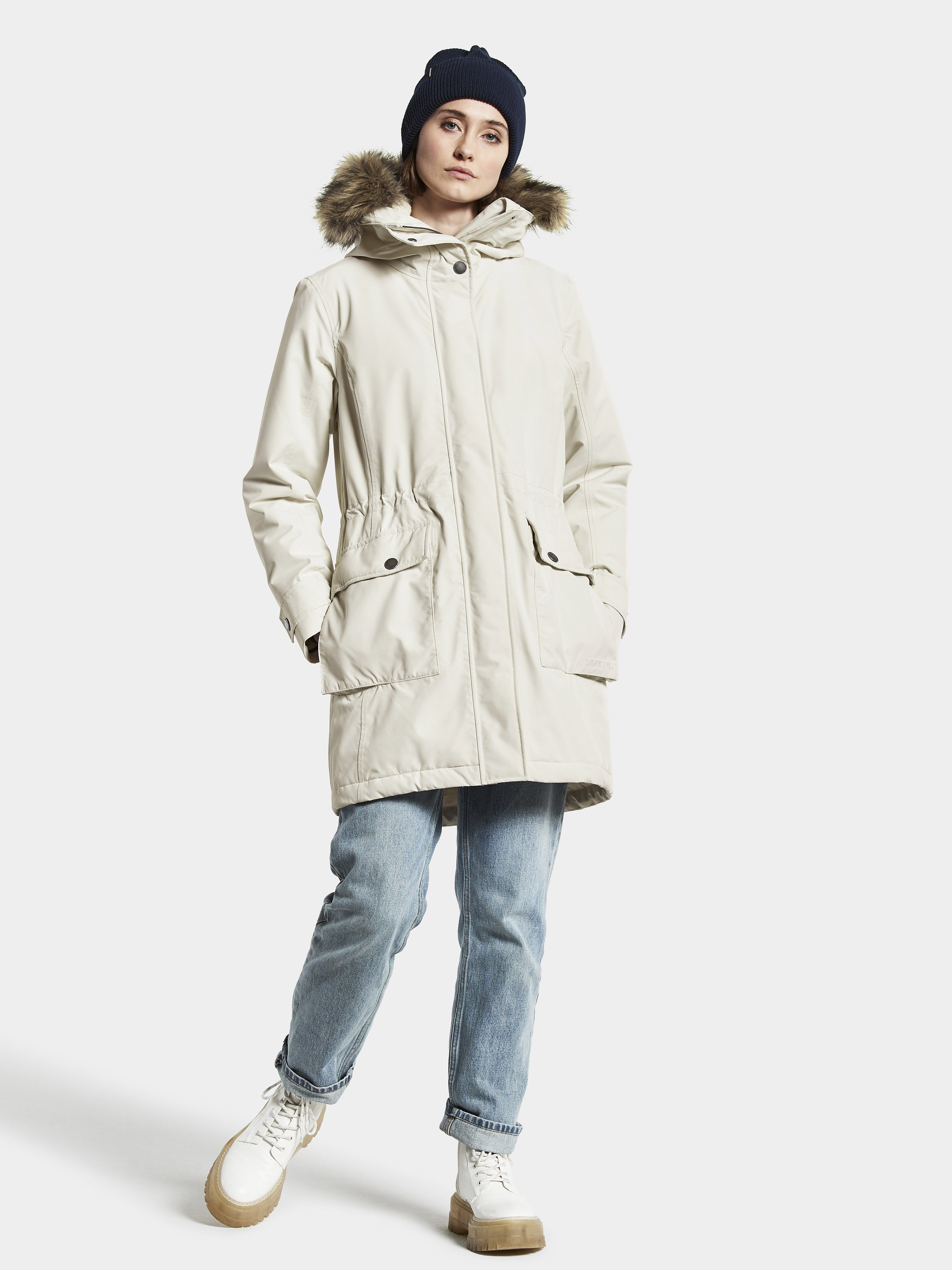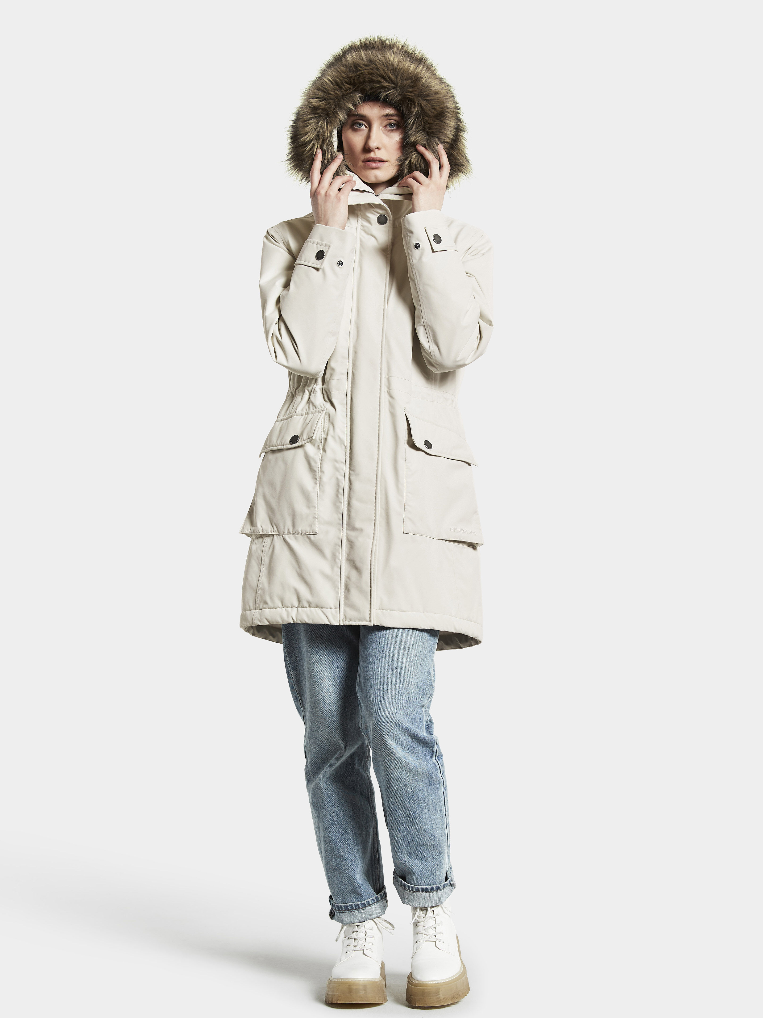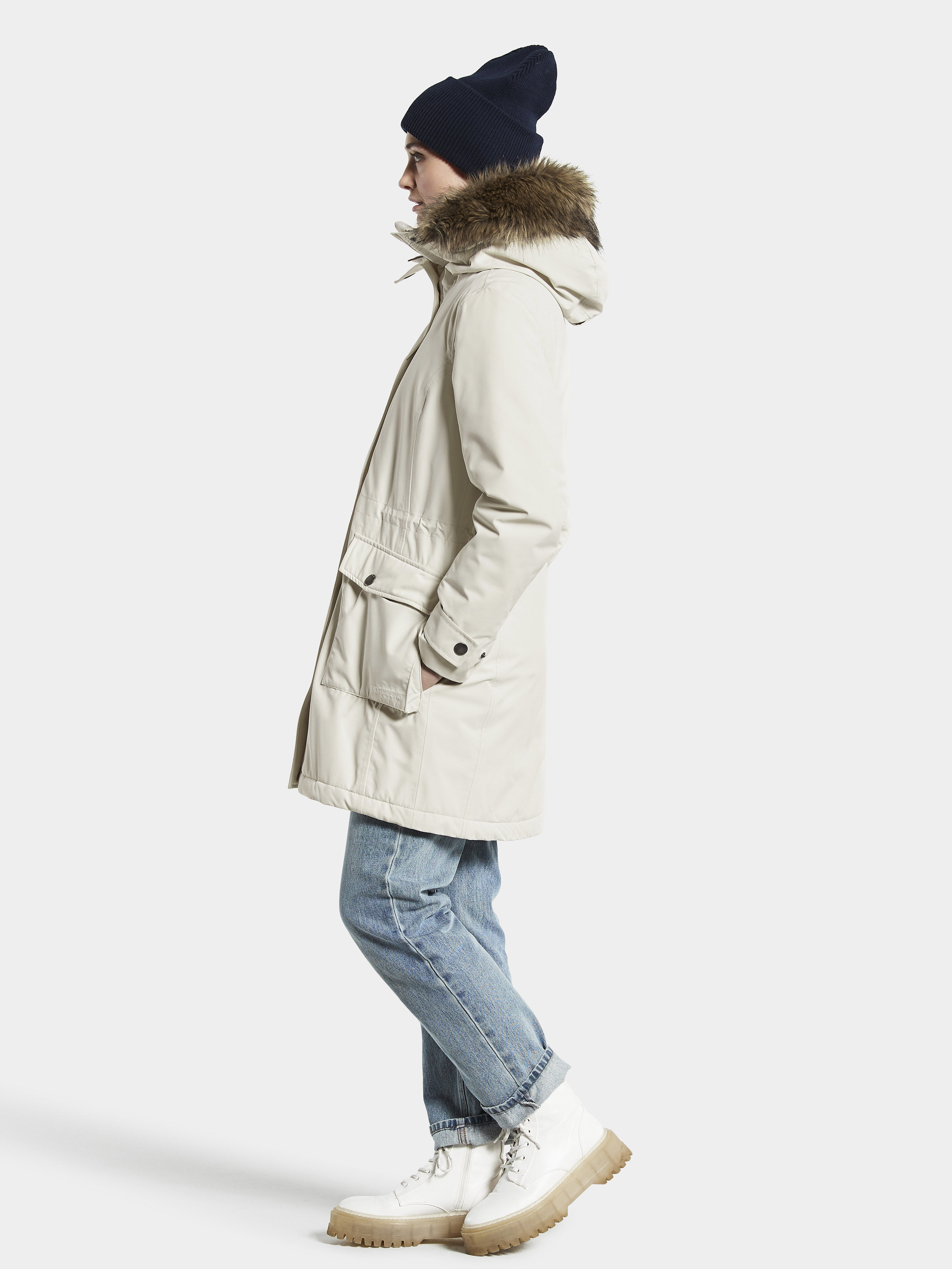 Didriksonsi Ellen parka on klassikaline, soe ja naiselik. Täielikult vee- ja tuulekindel, parkal on kõrge kraeosa, mis hoiab Sind soojas ka jahedamate ilmadega.