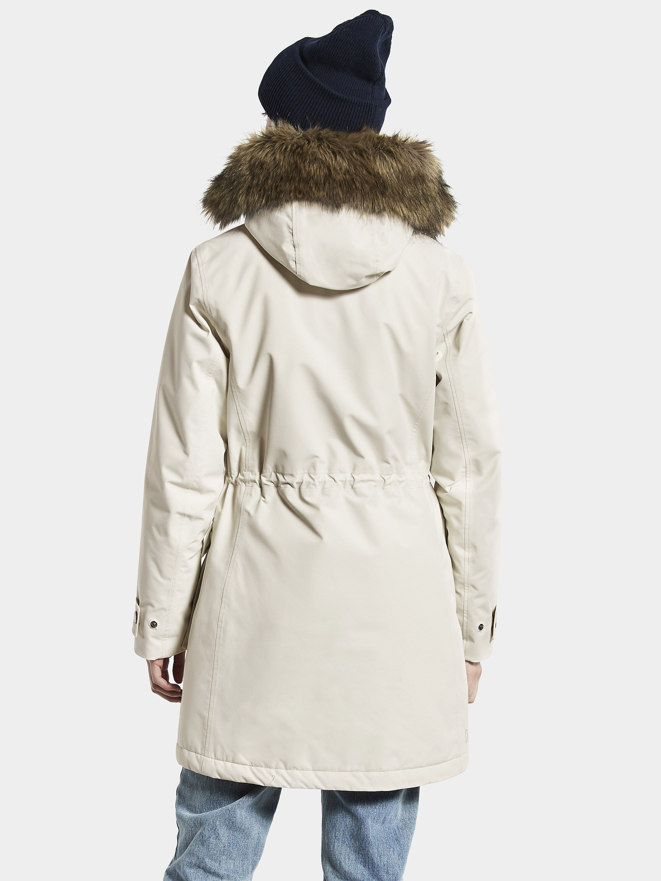 • Reguleeritav fikseeritud kapuuts on eemaldatava kunstkarvaga