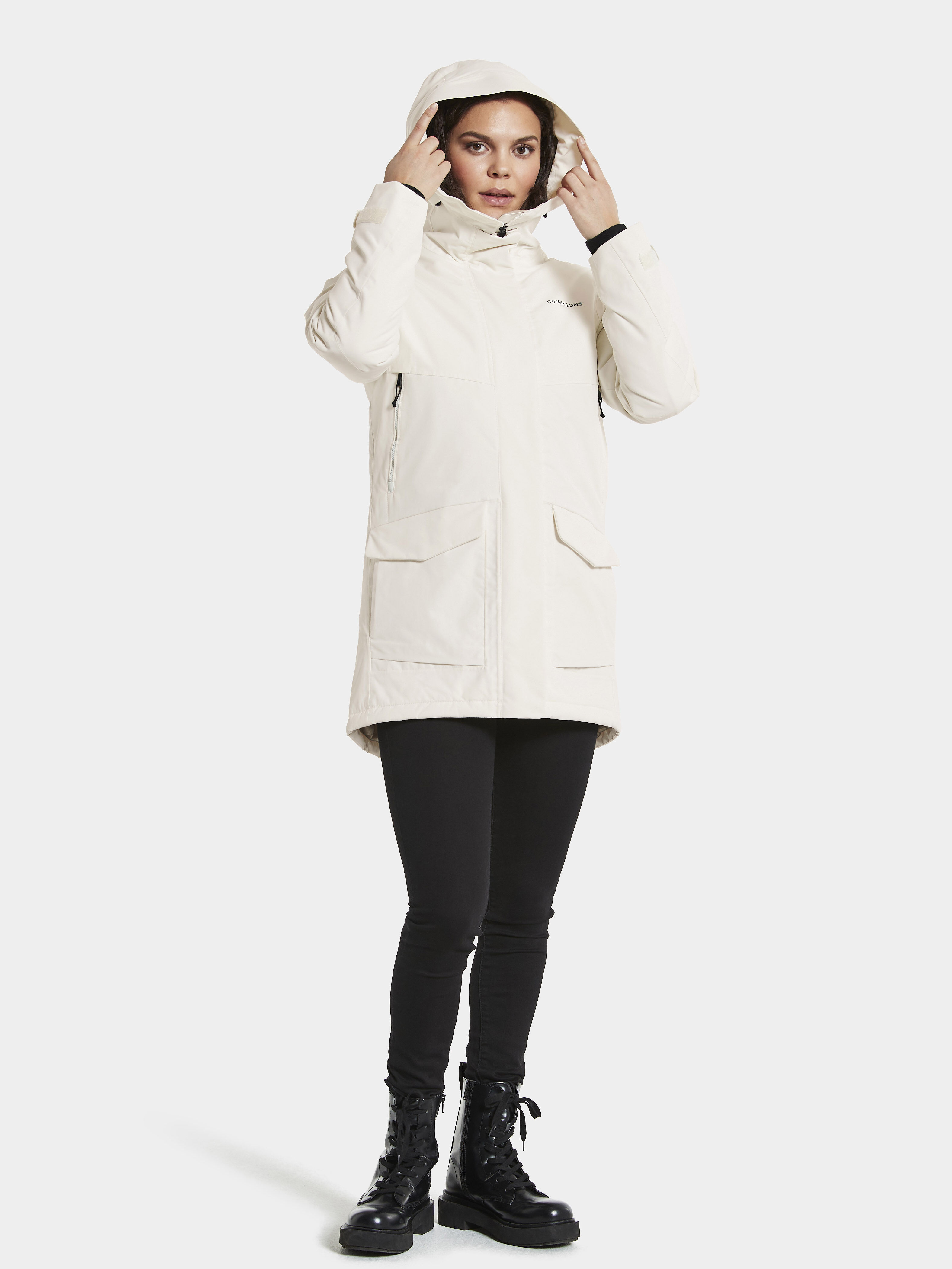 Frida on sportlik, keskmise pikkusega parka. See on täielikult tuule- ja veekindel, teibitud õmblustega, valmistatud hingavast kangast – ideaalne sügistalvisteks jahedateks ilmadeks! Kõrge krae kaitseb külma tuule eest, kapuuts on reguleeritav. Pöidlaaukudega kätised liibuvad mugavalt ümber randmete ja hoiavad käsi soojas. Neli praktilist välistaskut ja kaks sisetaskut mahutavad ära kõik vajaliku. Parkal on ka praktiline kahesuunaline tõmblukk tagamaks mugavuse ja hea ventilatsiooni. Polsterdus on valmistatud ümbertöödeldud kiududest ning sünteetilise materjali värvimiseks on kasutatud vähem vett, energiat ja kemikaale.