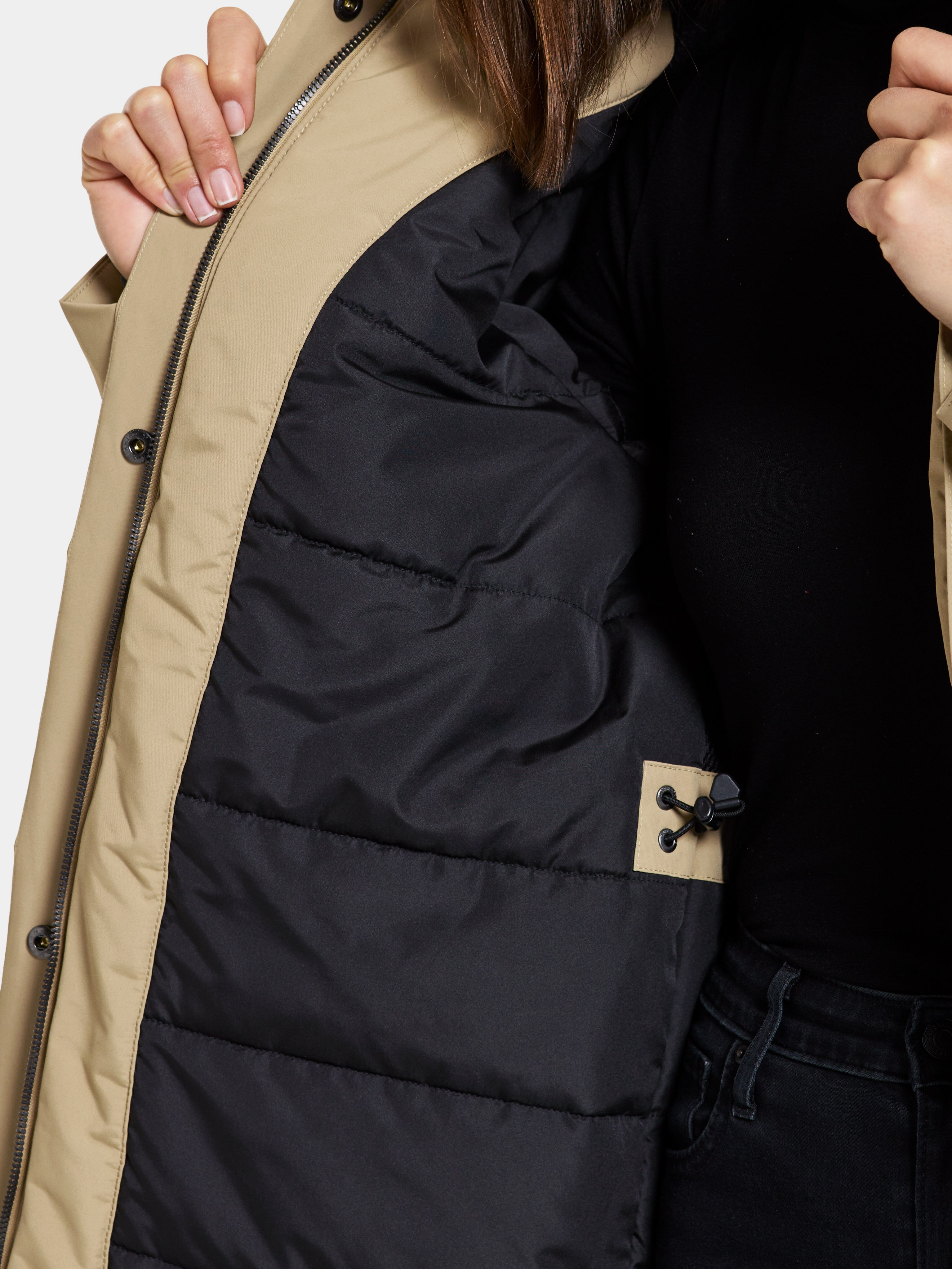 - Reguleeritav kapuuts ja kõrge krae