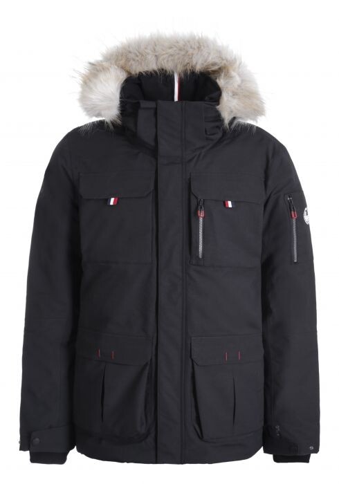 Parkal on kaks lukuga küljetaskut ning üks rinnatasku lukuga.Parkal on reguleeritav ja eemaldatav kapuuts ning veekindlaks teibitud õmbluskohad.