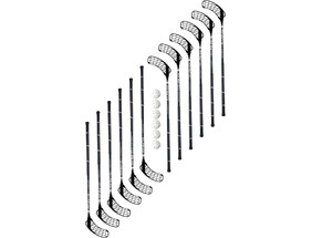 Saalihokikomplekti kuulub 12 saalihokikeppi ja 6 valget palli. Saalihokikepid on pikkusega 96 cm, üldpikkus 106 cm. Kepid on jäigemate labadega, sobivad nii sise- kui välitingimustes kasutamiseks ja sobivad hästi algajatele ning koolidele kehalise kasvatuse tundides mängimiseks. Saalihokikepid on heaks kiidetud Rahvusvahelise Saalihoki Liidu poolt.