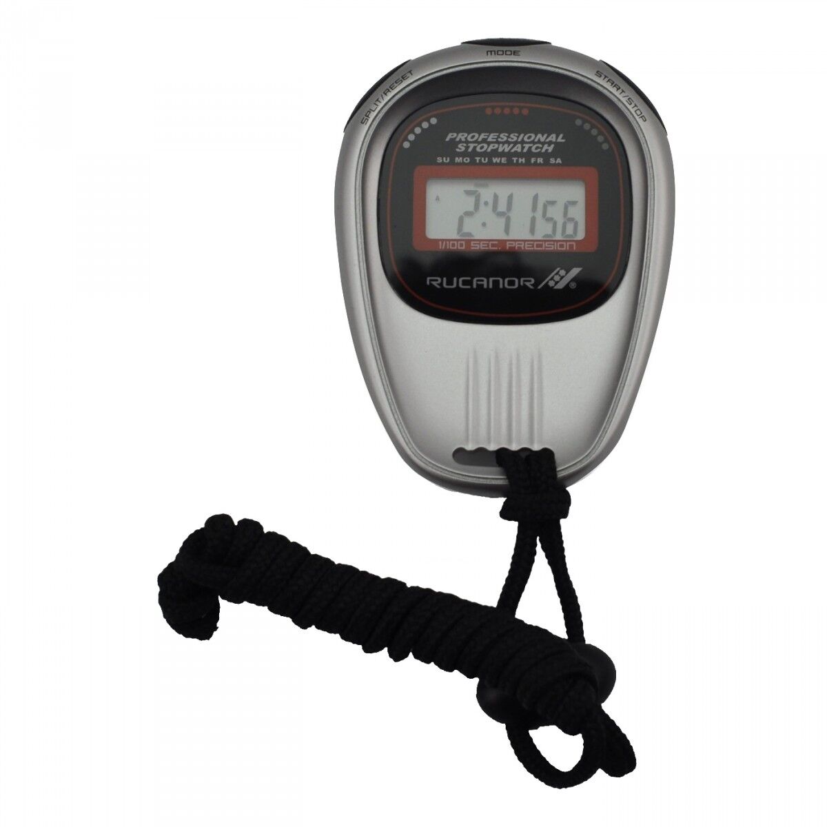 Rucanori viie funktsiooniga elektrooniline stopper: stopperil on 1/100 sekundit esitlusvõime, esimese 30 minuti jooksul ja kuni 24 h ringiaja kuvamise võimalus, kalender, täistunni alarm ja äratuskell. Võimalik valida kas 12 h või 24 h ajasüsteem. Sisaldab liitiumpatareid ning kaelapaela. Lihtne patareivahetus.