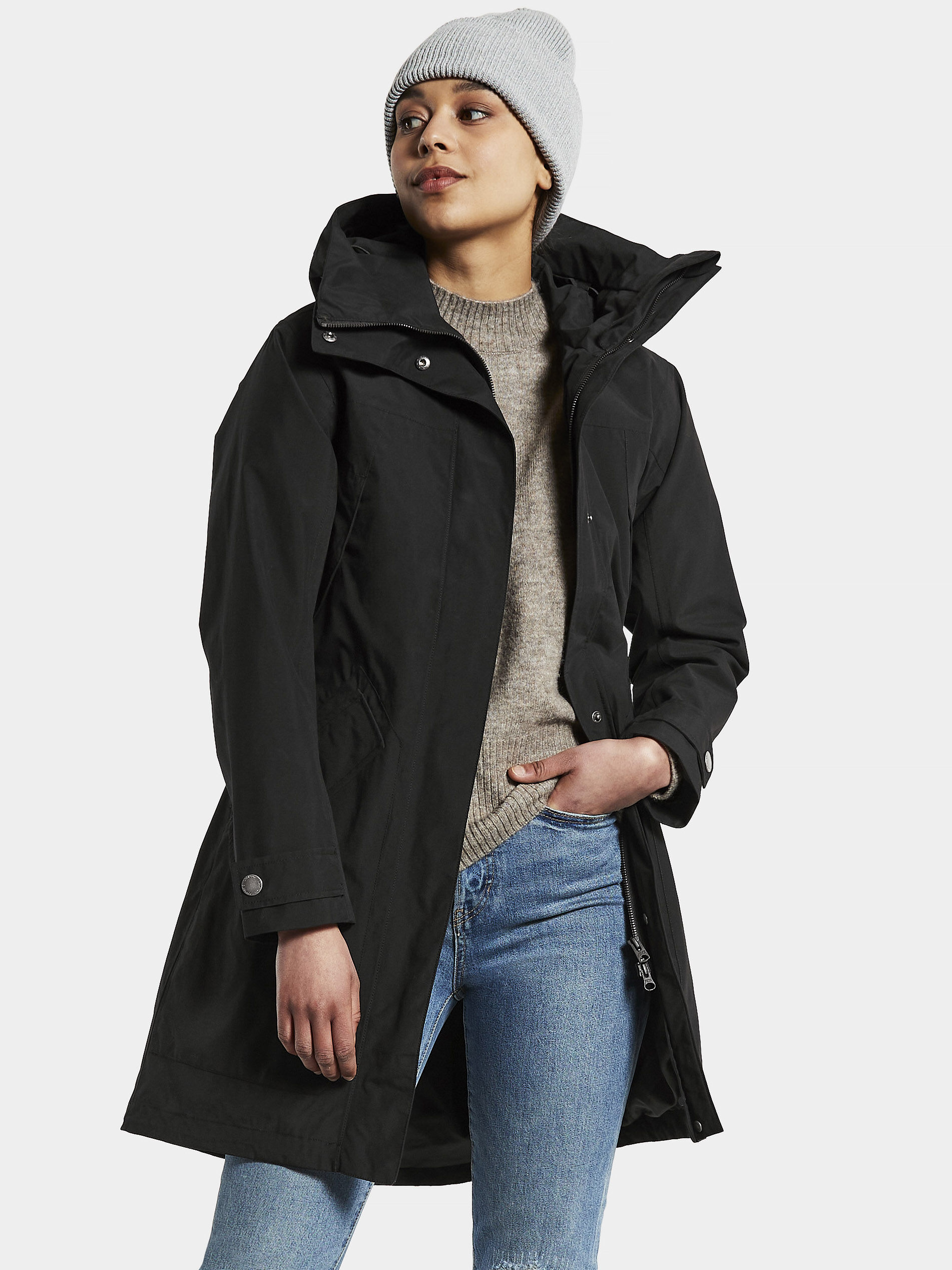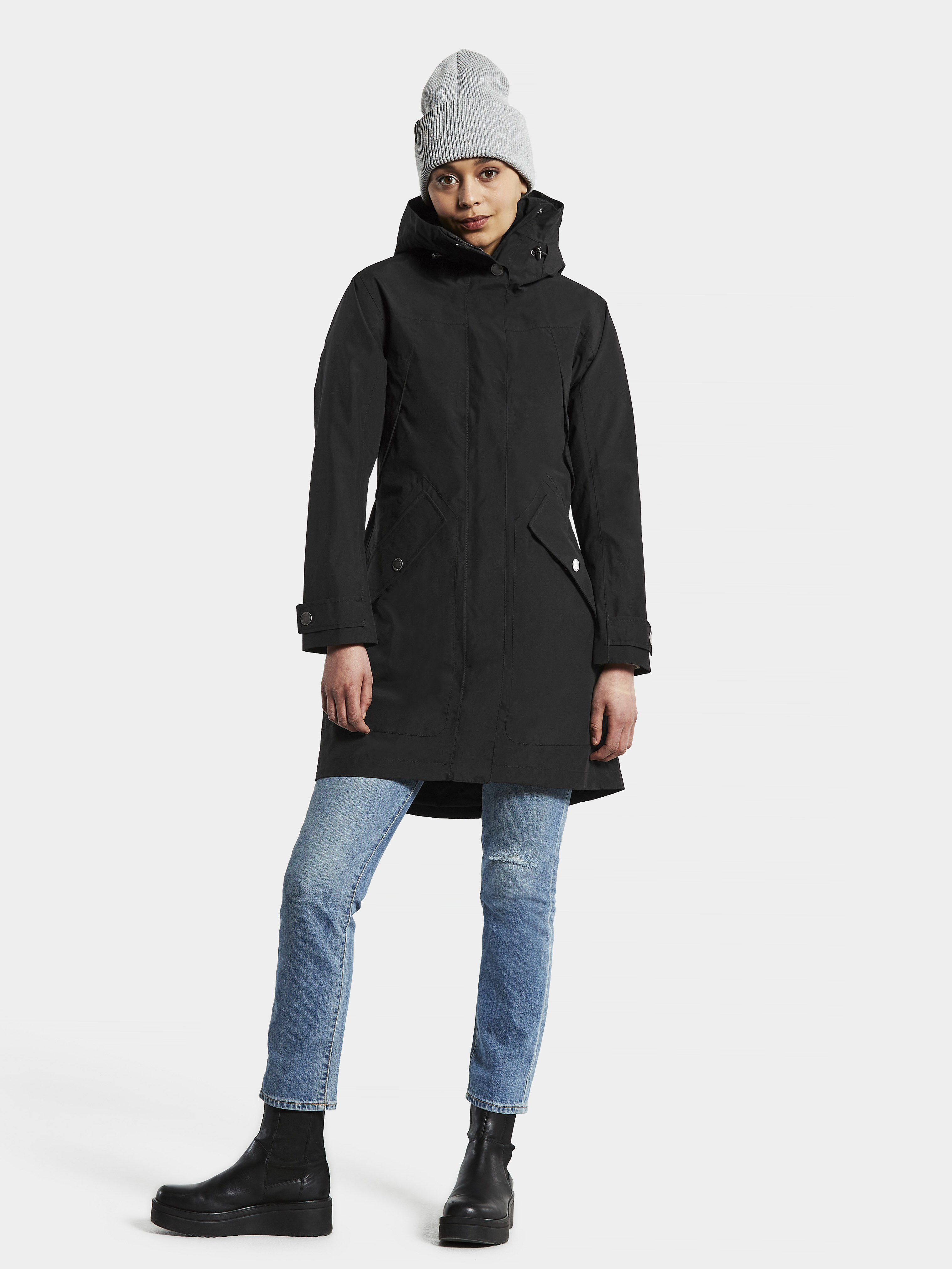 Didriksonsi naiste kevad/sügis parka Elsie. Parka pakub head kaitset iga ilmaga, sest on vee- ja tuulekindel. Veekindluse tagamiseks on õmblused teibitud. Kapuuts on fikseeritud ja reguleeritav kahes suunas. Mansetid reguleeritavad.