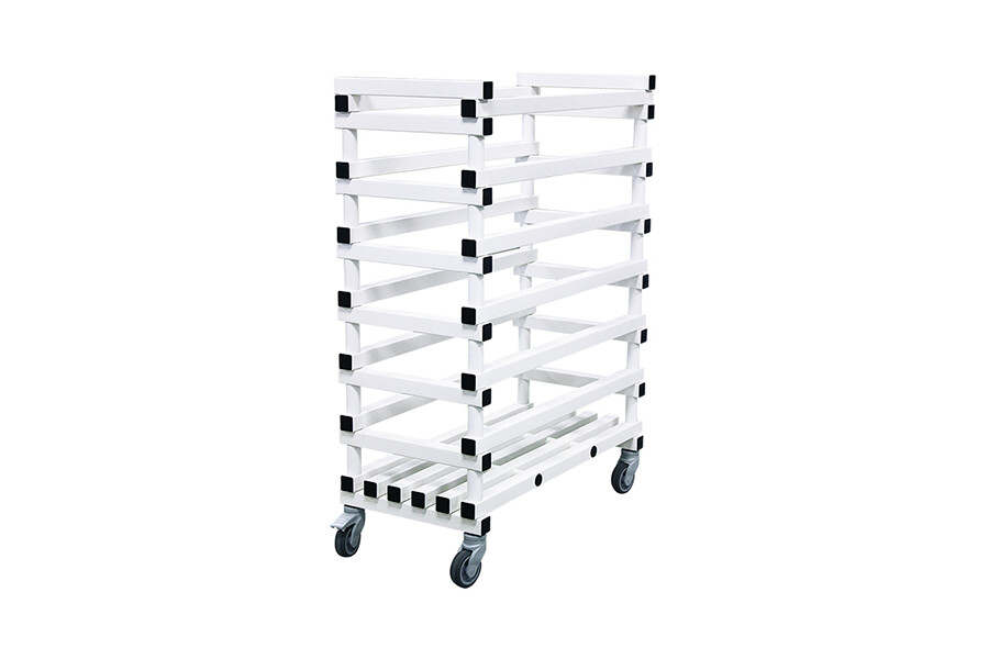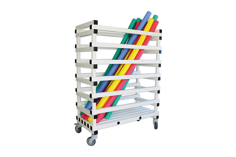 Valmistatud PVC plastik elementidest, niiskuse-, mustuse- ja happekindel. 4 pöörlevat ratast (2 neist lukustatavat). Mõõdud 100x50x130cm. Mahutab ca 60 nuudlit.