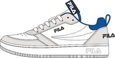 Kvaliteetsest kunstnahast valmistatud valged jalatsid sobivad igaks olukorraks. Jalatsite küljel ja kannaosas on tikitud FILA logo, küljele on lisatud Filale iseloomulik muster.