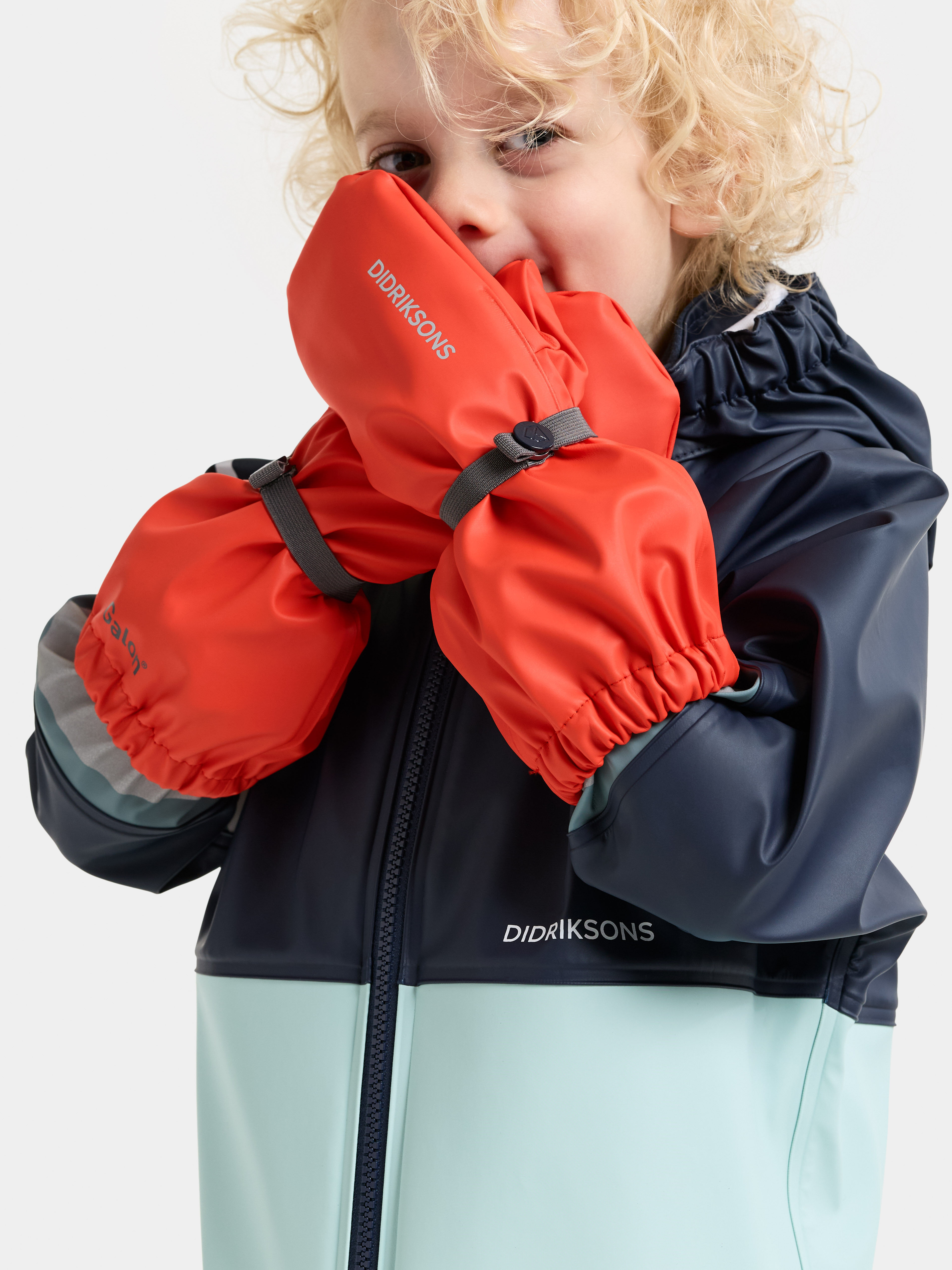 Veekindlad Galon® pealismaterjalist kindad hoiavad lapse käed soojana vihmaste ilmade korral.