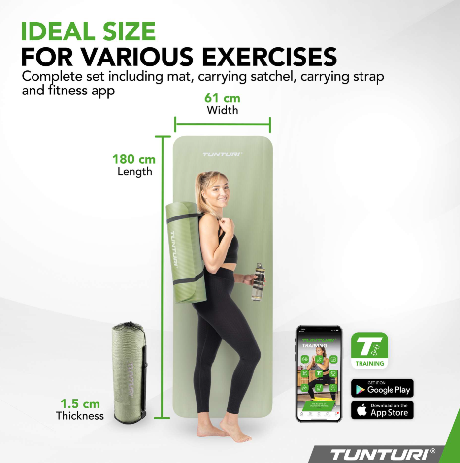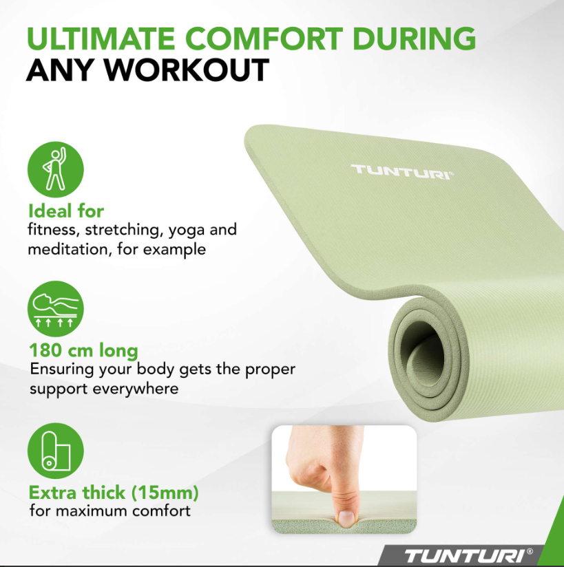 Tunturi NBR treeningmatti eelised ✓ Optimaalne kehatugi tänu 180 cm pikkusele